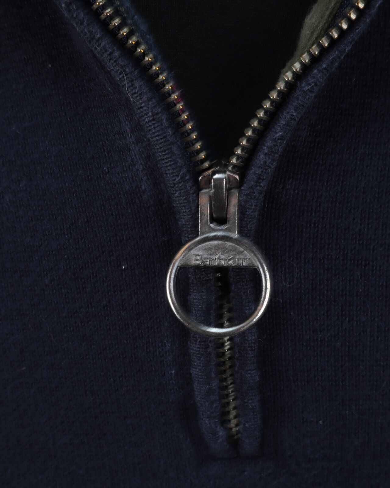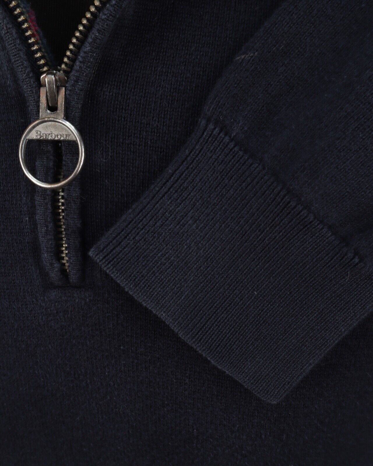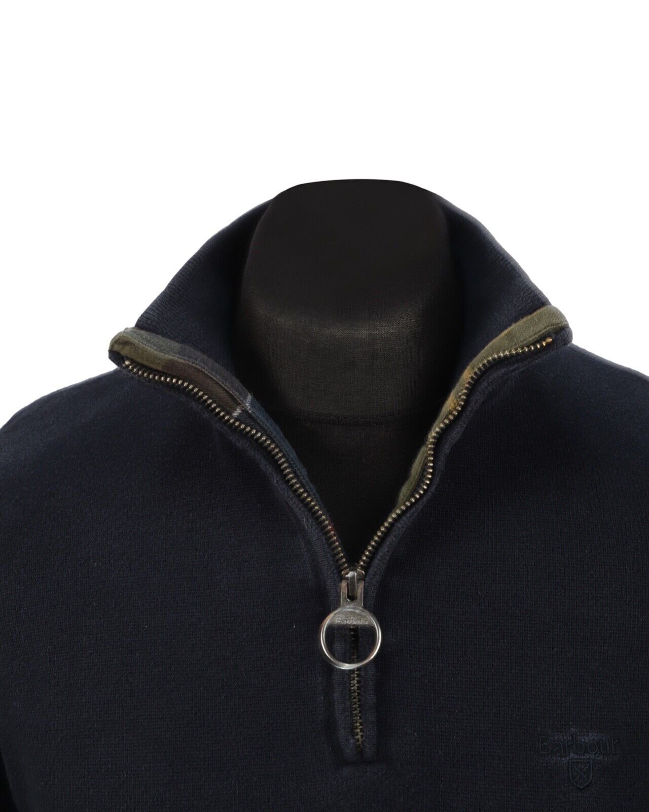 BARBOUR Jumper Navy Blue Zip Neck Cotton Men's Size M