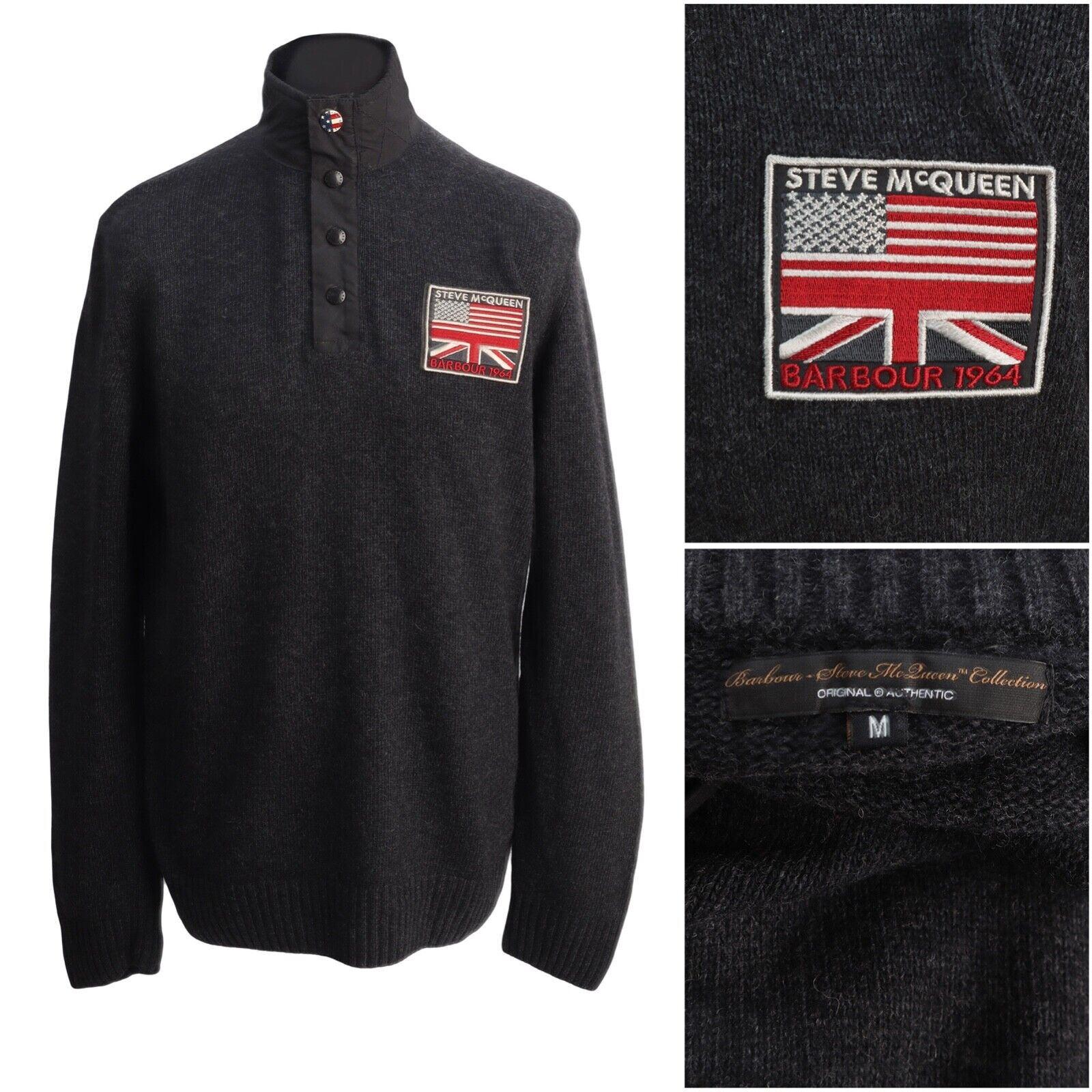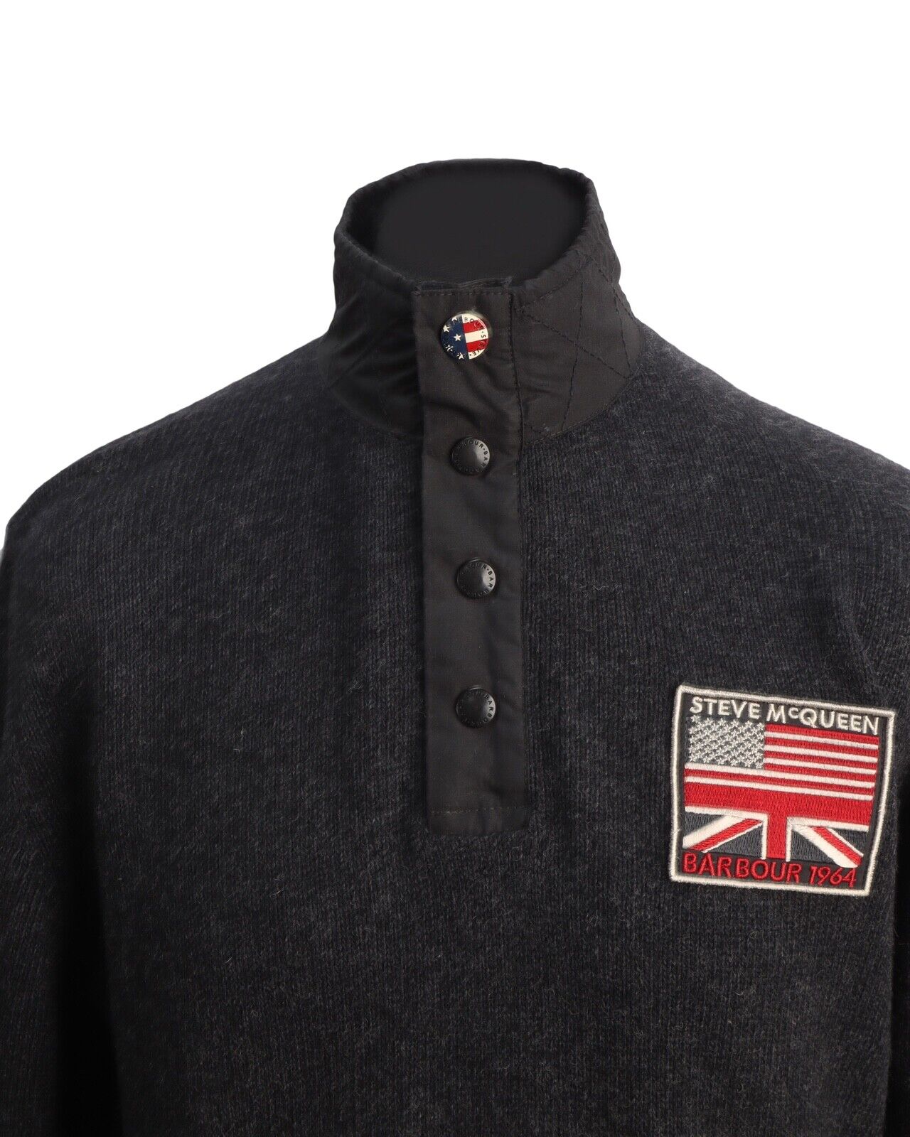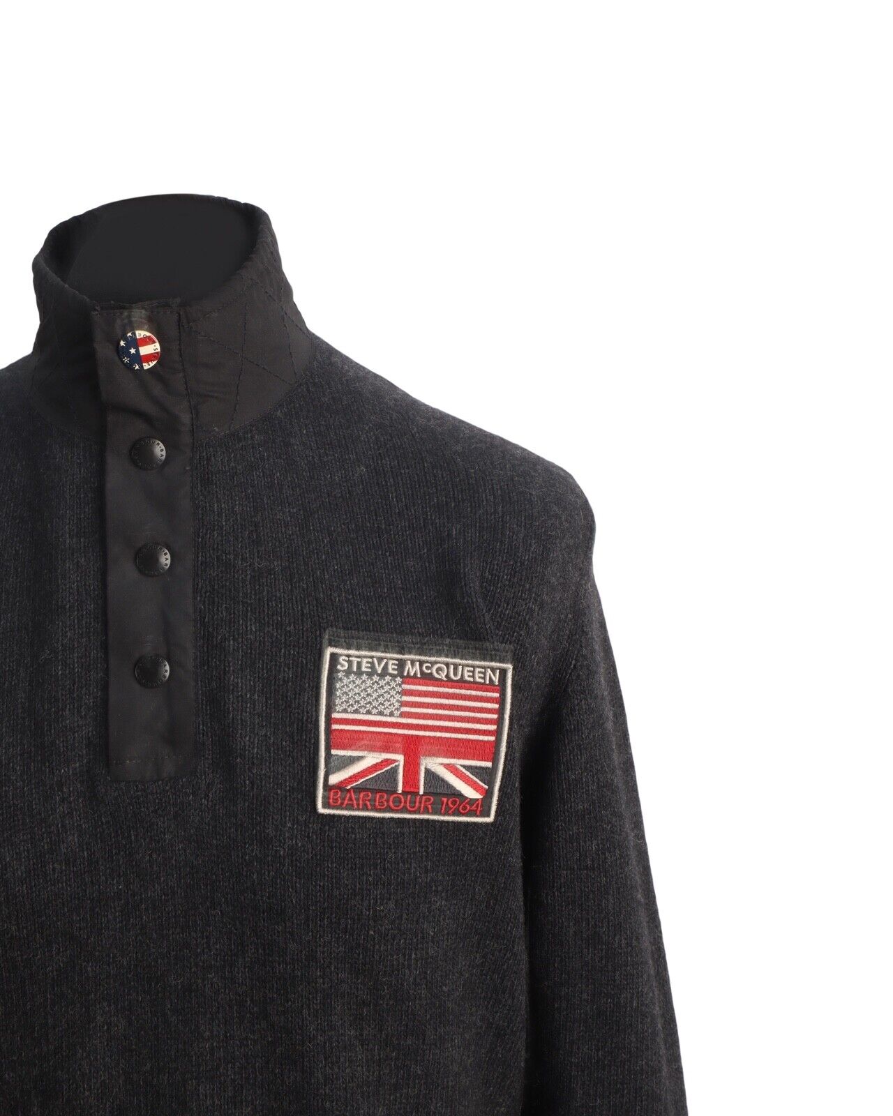 BARBOUR Jumper Steve McQueen Black Wool Blend Button Neck Men's Size M
