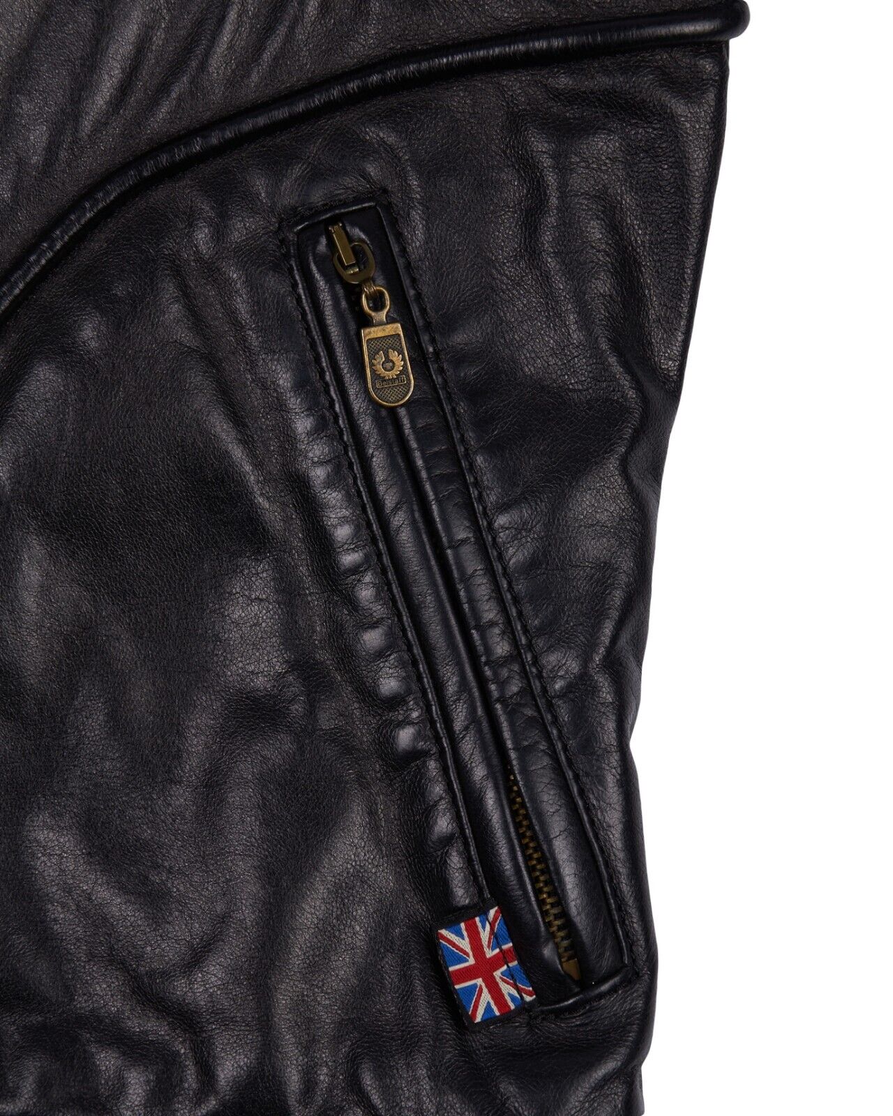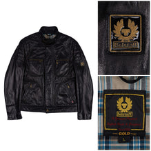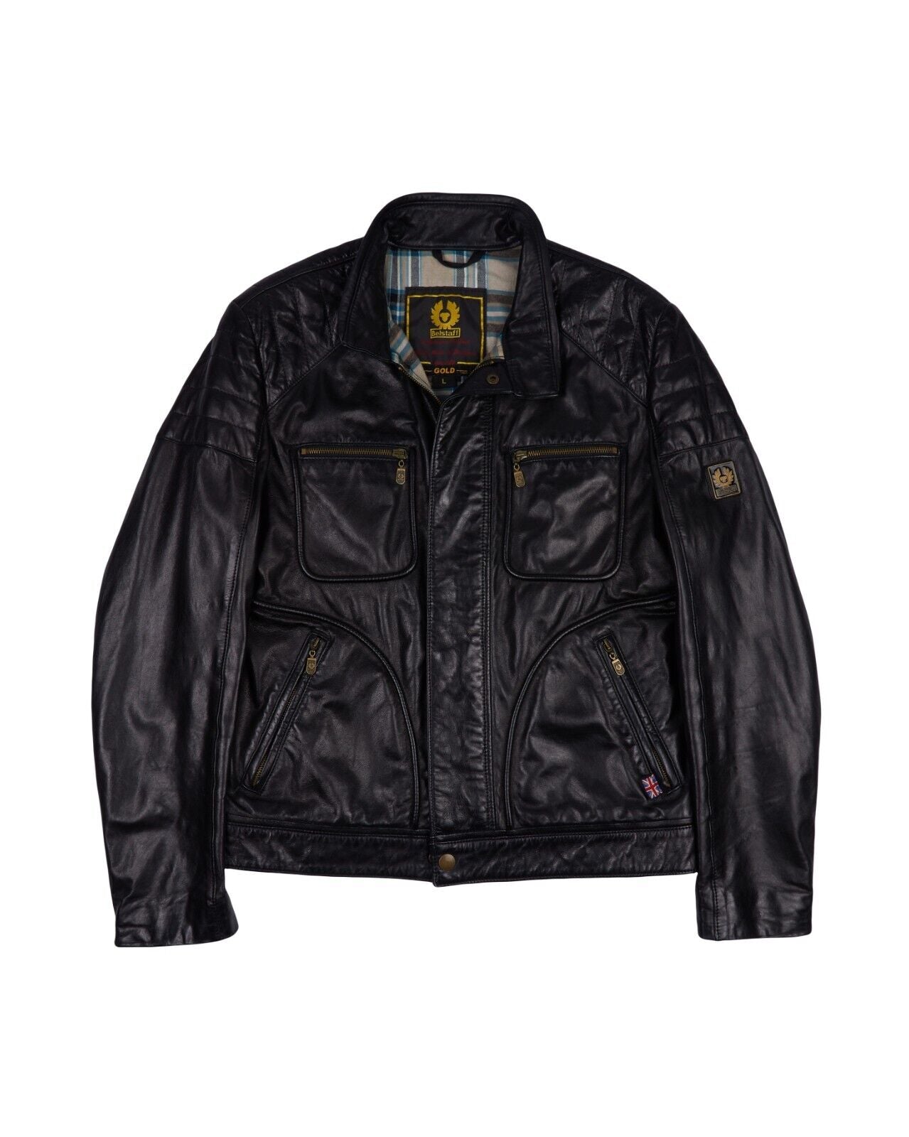 BELSTAFF Jacket Black Leather Full Zip Mens Size L
