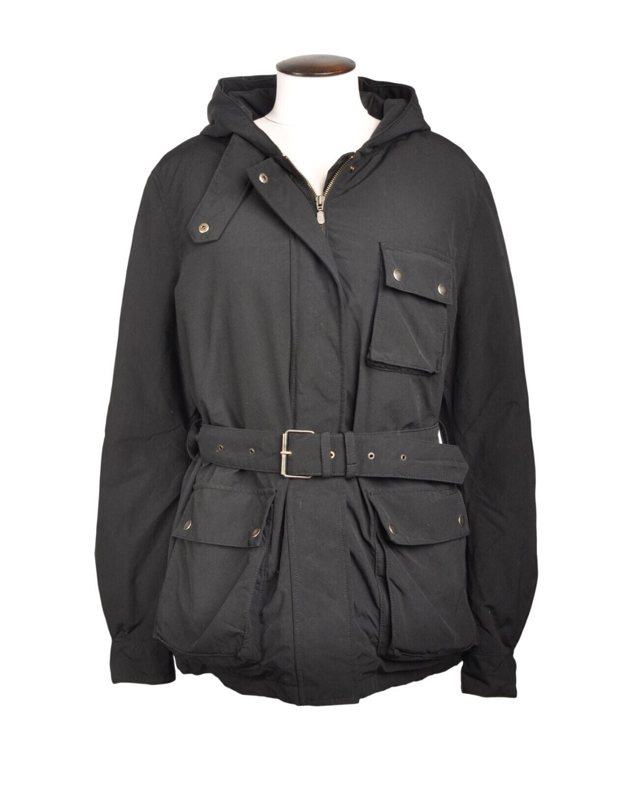 BELSTAFF Real Goose Down Jacket Black Gold Label Hooded Womens Belted Size 48