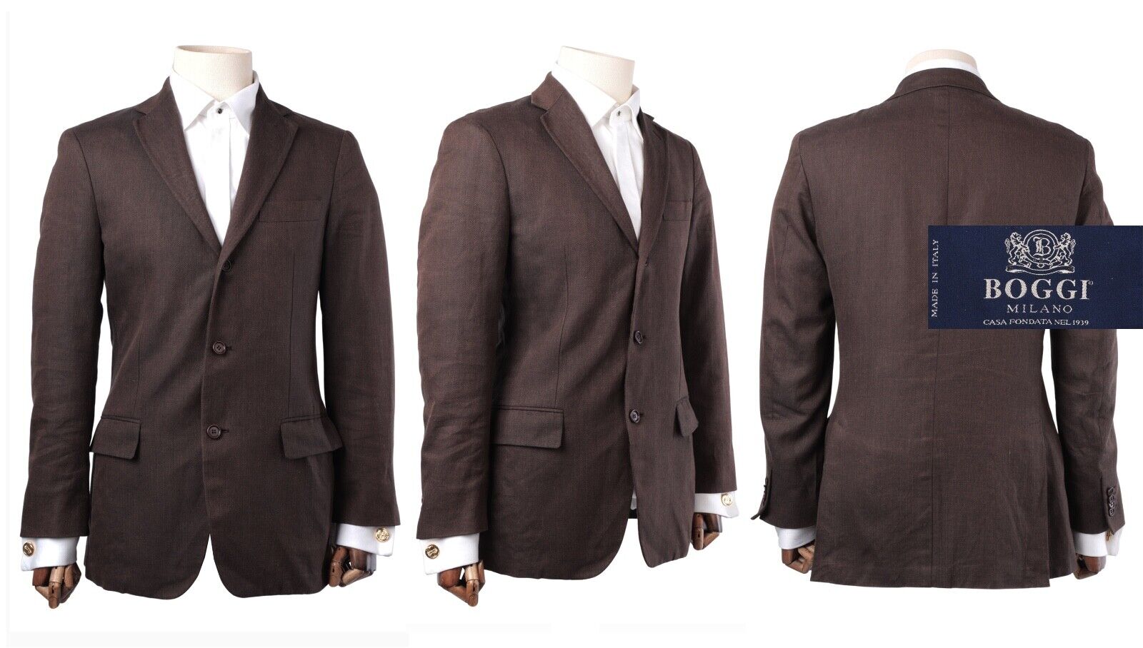 BOGGI Blazer Brown Linen CottonMen's Sport Coat Size 48 IT