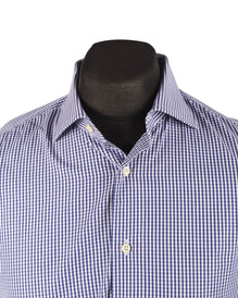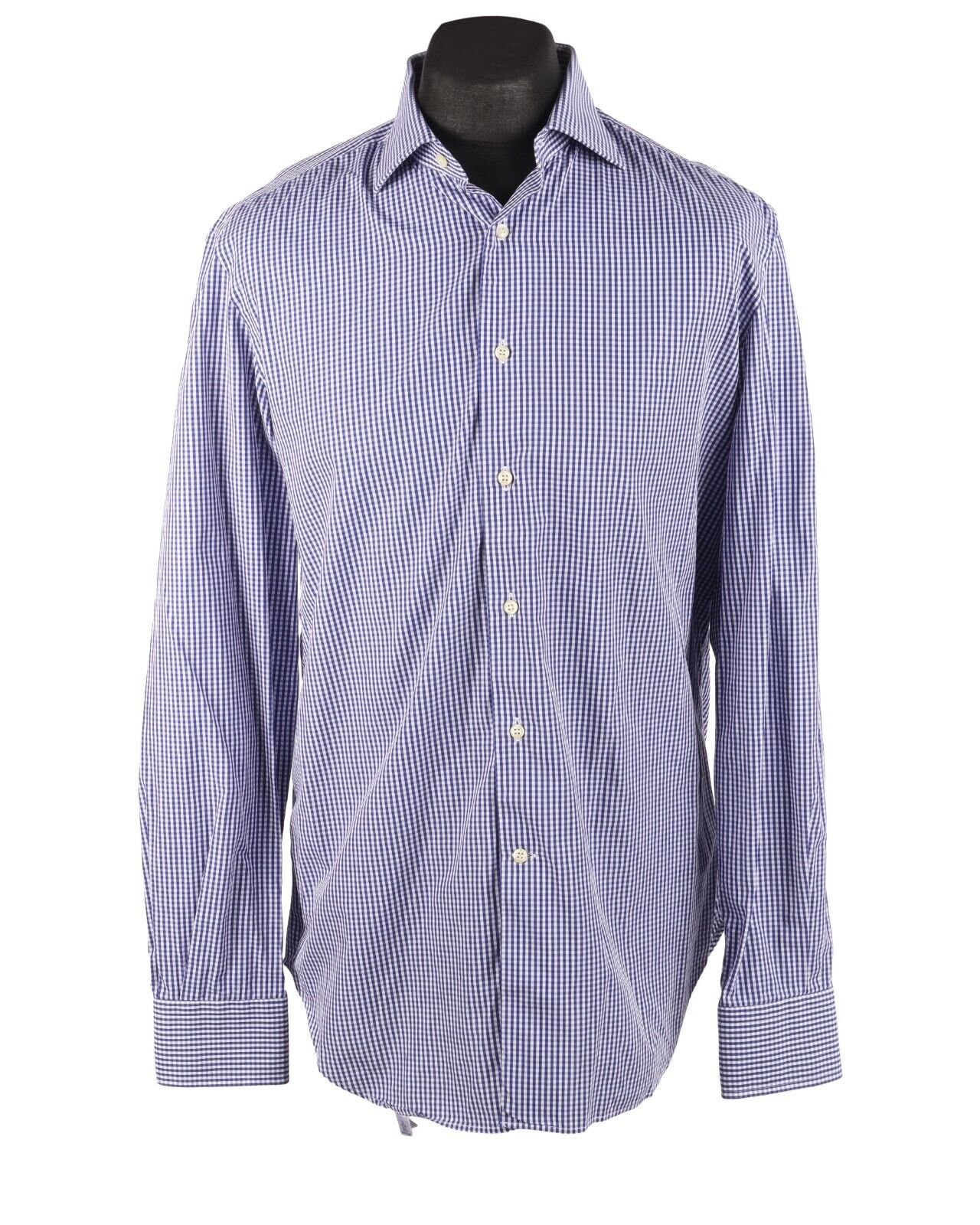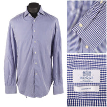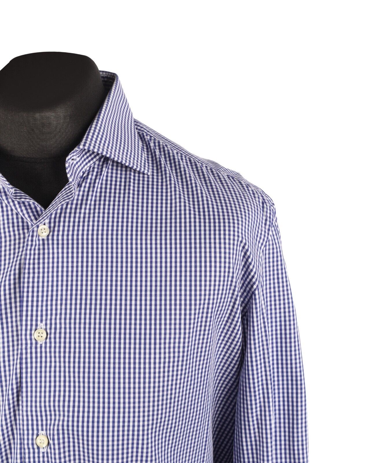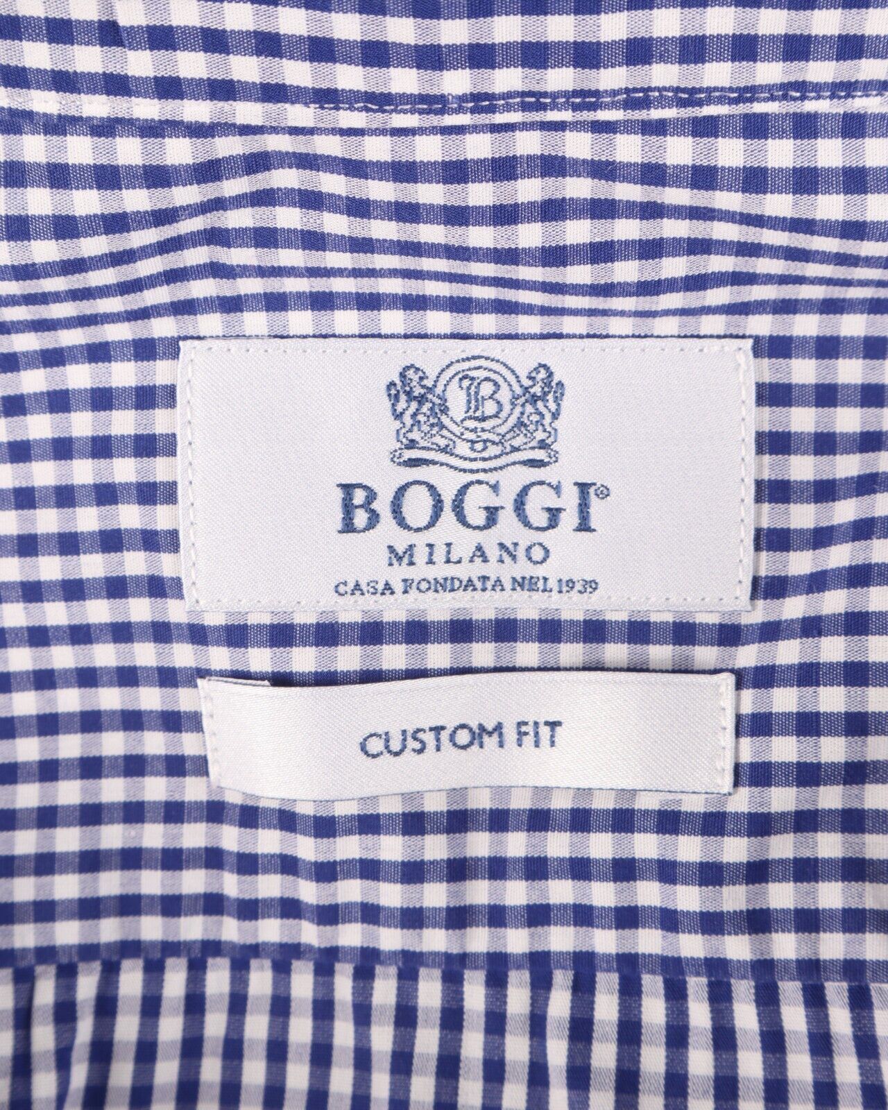 BOGGI Milano Dress Shirt White Blue Check Cotton Men's Custom Fit Size 42 / 16
