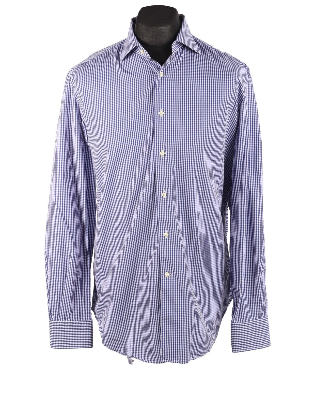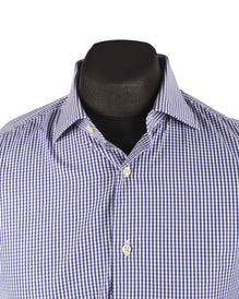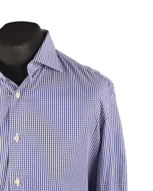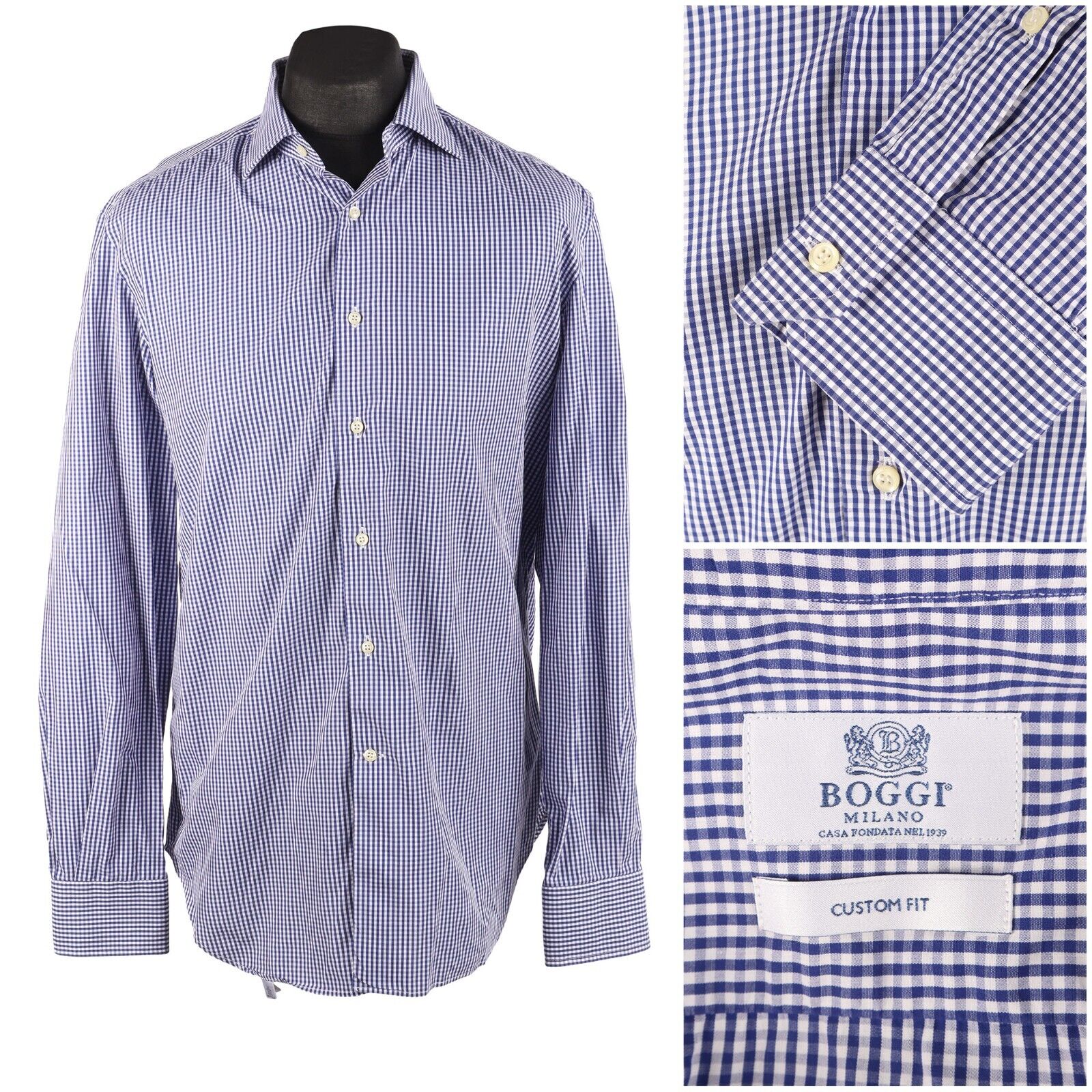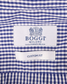 BOGGI Milano Shirt Blue Check Cotton Custom Fit Men's LS Size 42 / 16