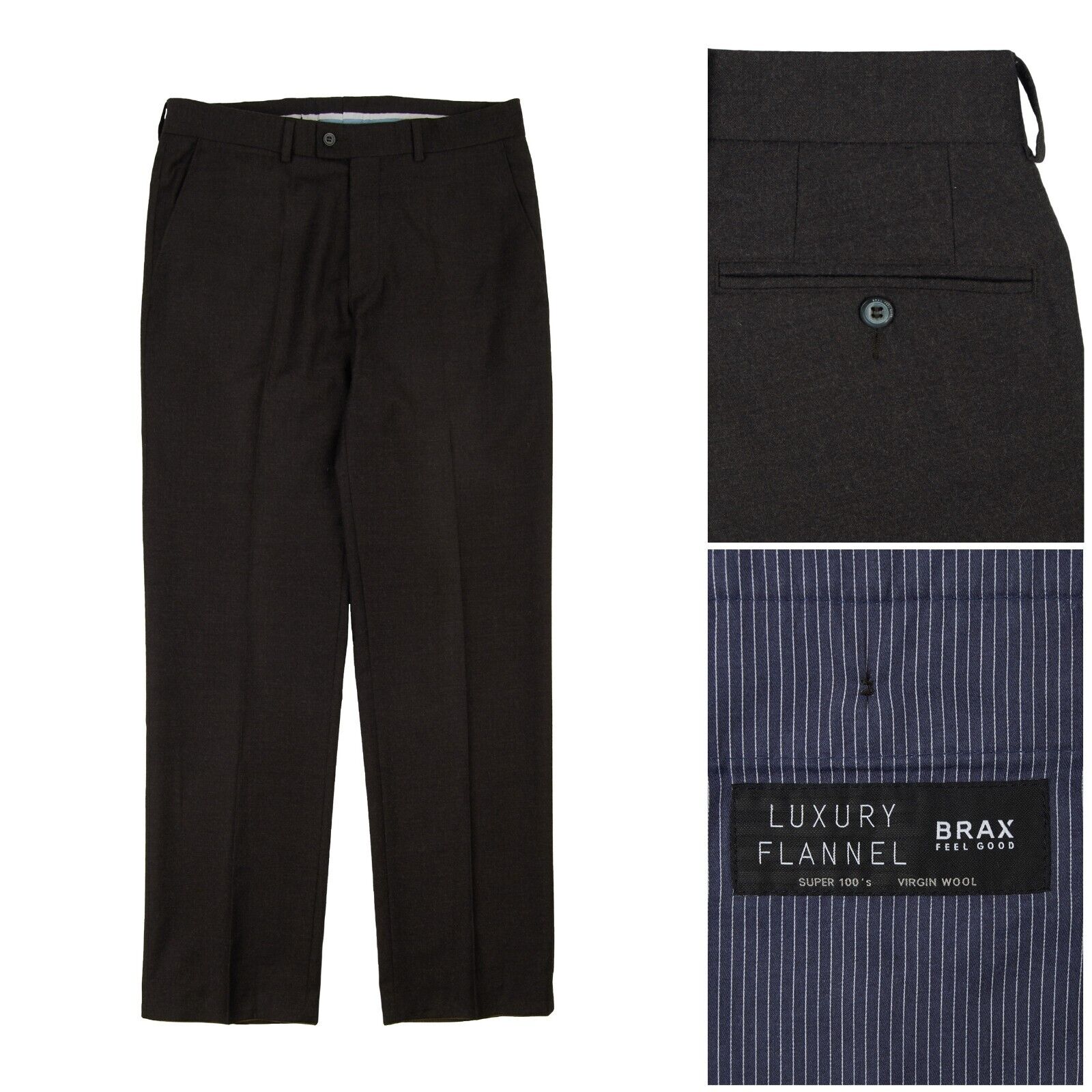 BRAX Dress Pants Grey Flannel Wool Mens Straight Leg Trousers Size 48 R