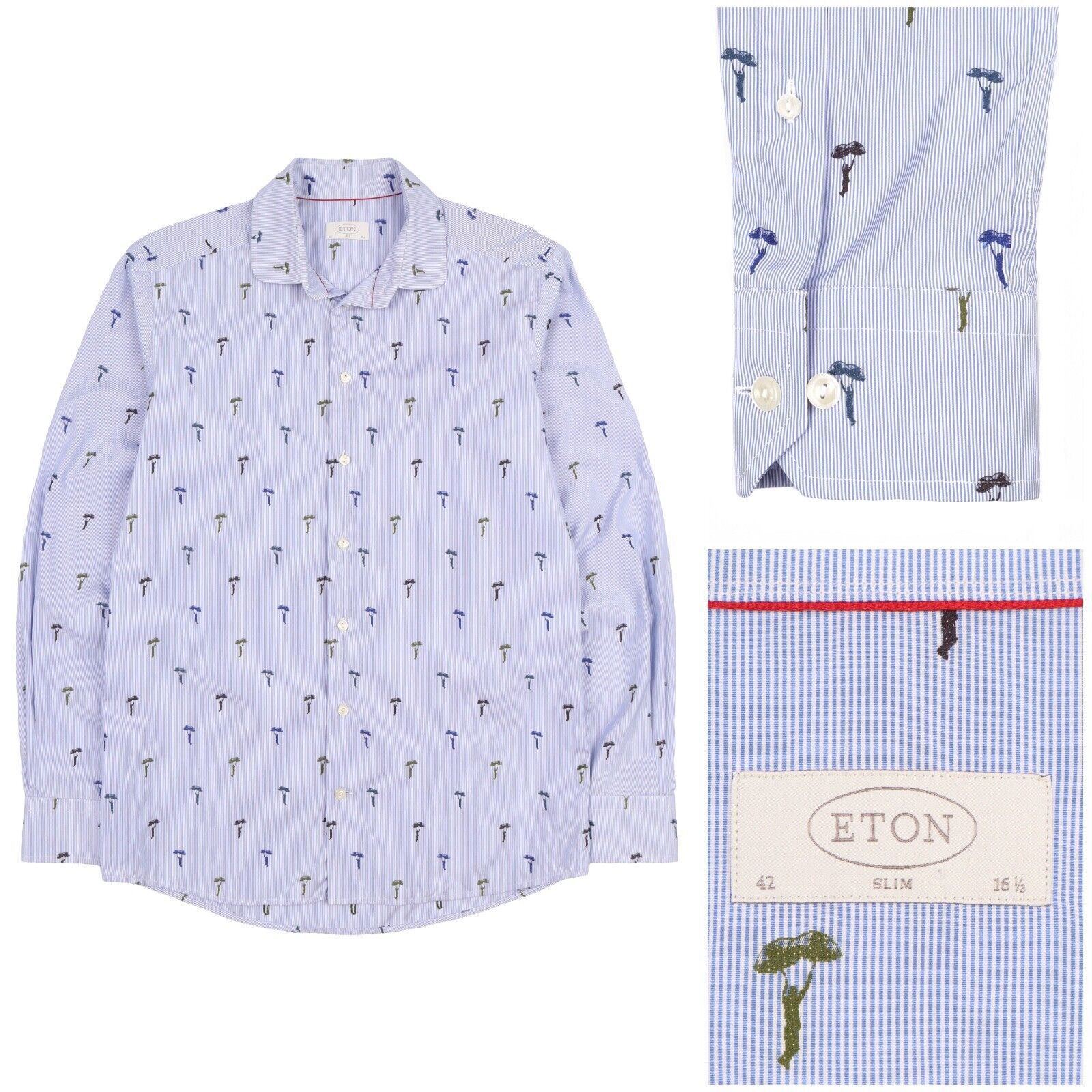 ETON Shirt Striped Parachutist Blue Cotton Men's Size 42 / 16.5